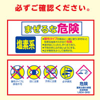 - 酸性タイプの製品と混ざらないようにする。有毒ガスが発生して危険。